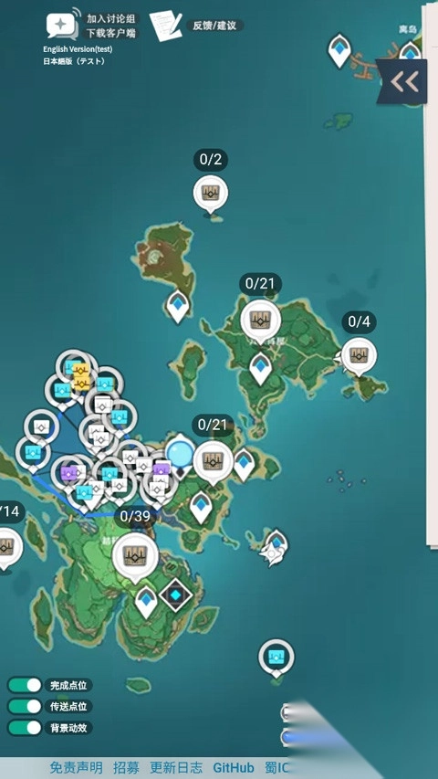 3、给出了风神瞳、岩神瞳、宝箱、野外boss、七天神像、NPC、传送点、地灵龛、矿物、秘境等各类资源点的具体分布位置。