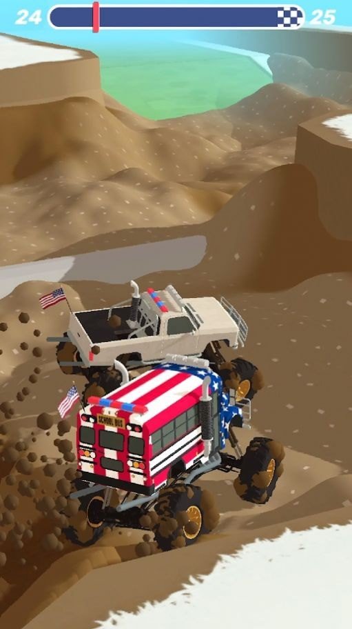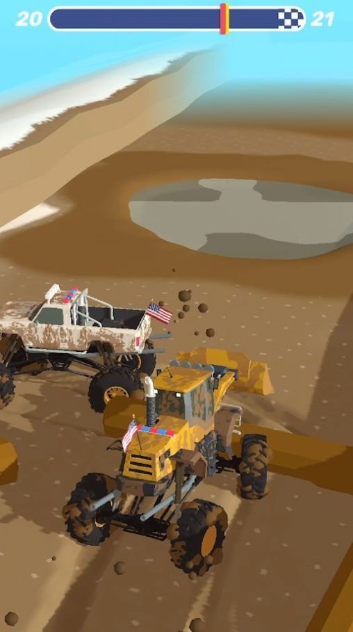 1、避开可怕的泥坑,一旦陷入,一切就结束了。赢取胜利、赚取金钱,升级你的座驾吧!