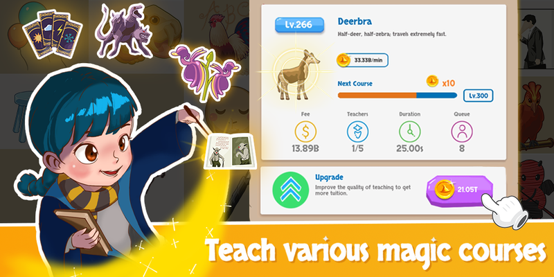 可进入不同的魔法商店购买道具,离线挂机也可以自动获取收益。