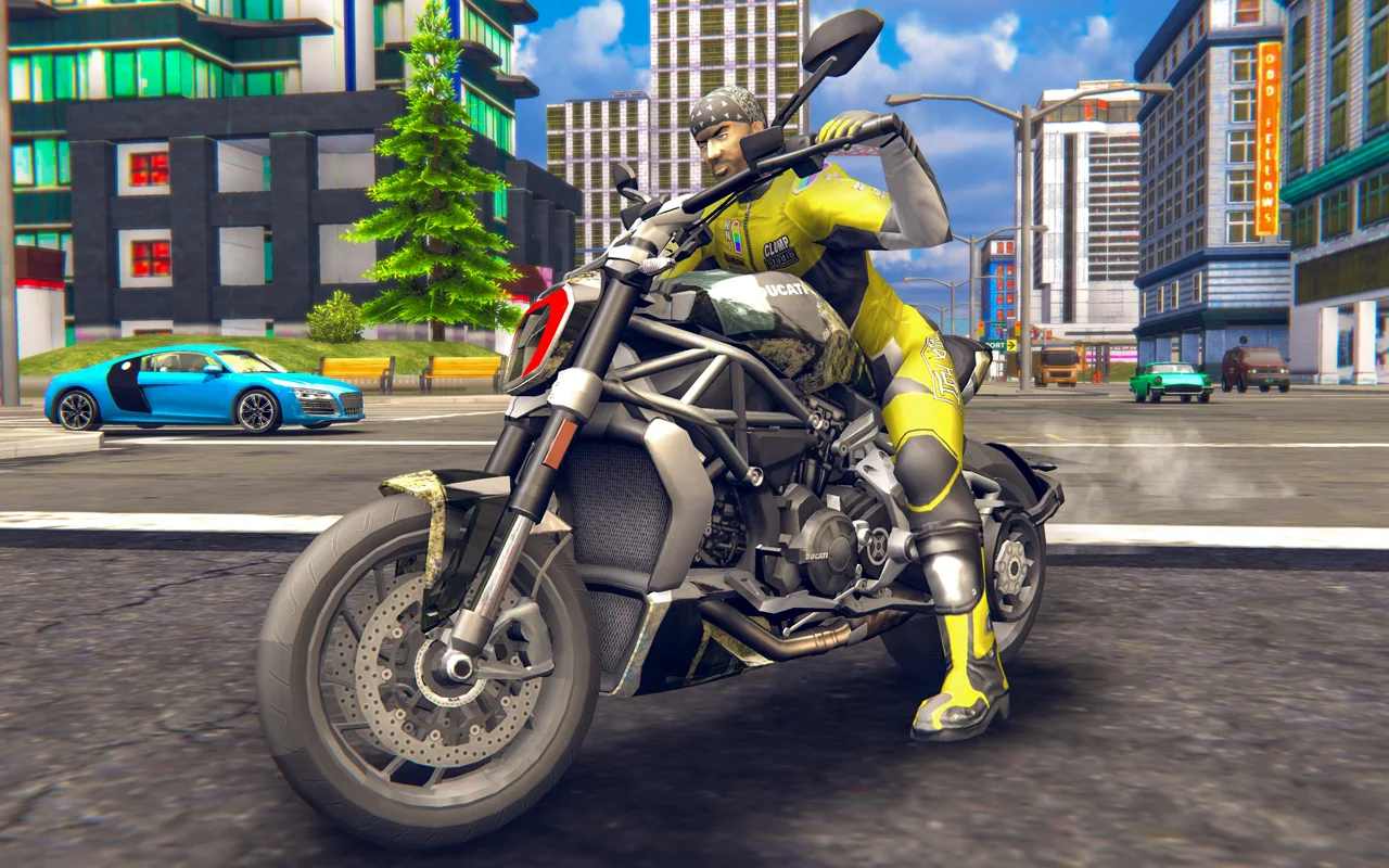 2、3D写实的画面,玩家们将需要在游戏内驾驶着自己的摩托车行驶在各个街道。