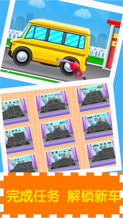 多个任务执行如洗车,修理汽车,汽车脏清洁,空气和燃料检查,汽车设计拼图等。