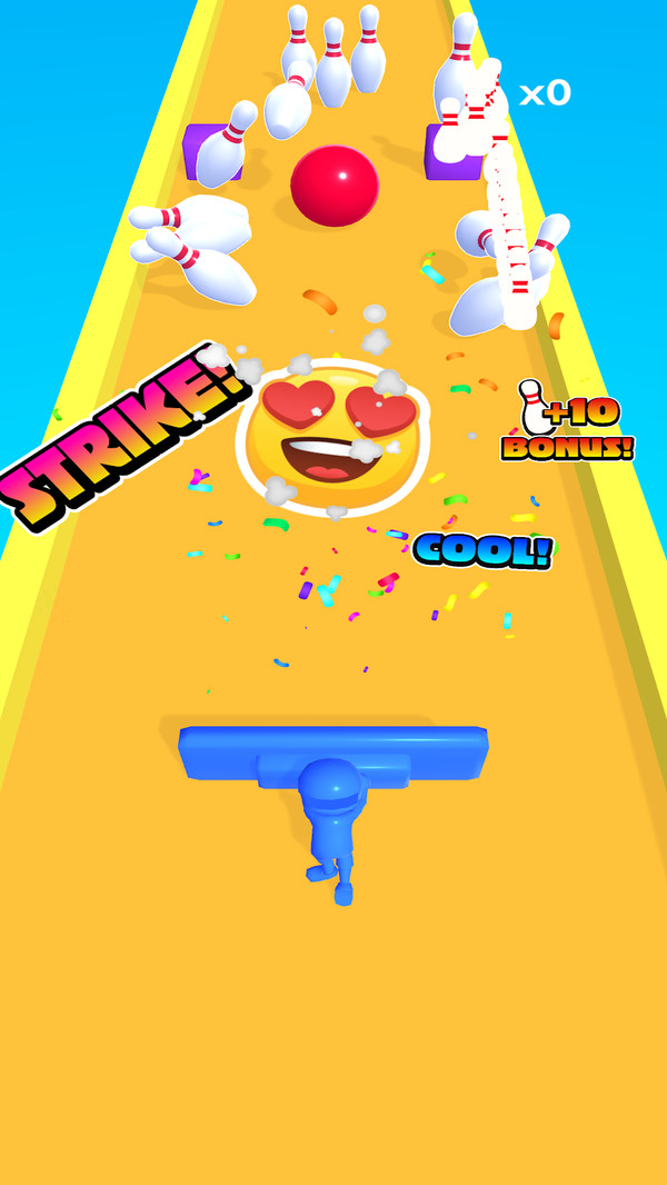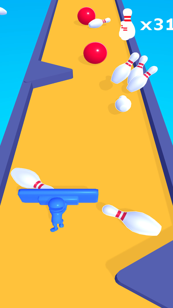 非常经典的保龄球玩法,通过投掷保龄球来撞击面前的各个瓶子,倒下的越多,那么分数就会越高。