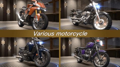 2、各种炫酷无比的摩托车可以自由选择,感受刺激无比的驾驶竞速过程。