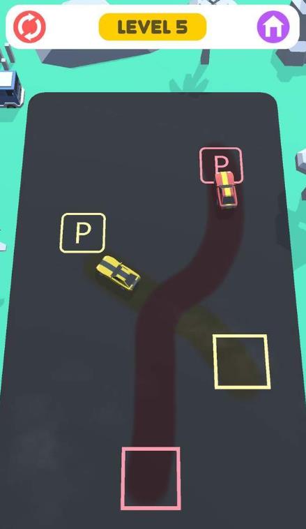 3、在多个汽车同时出现时,玩家要绘制出两条道路,让车辆不能相互碰撞。