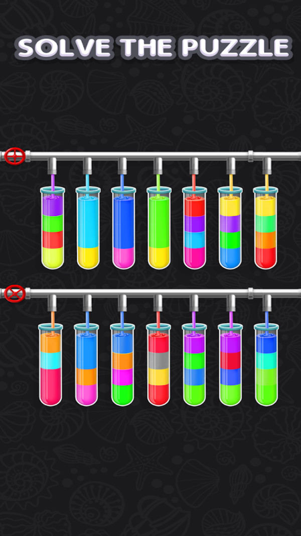 3、在整个逻辑益智游戏中,您要做的就是利用您的大脑并在每个试管中正确分类颜色。