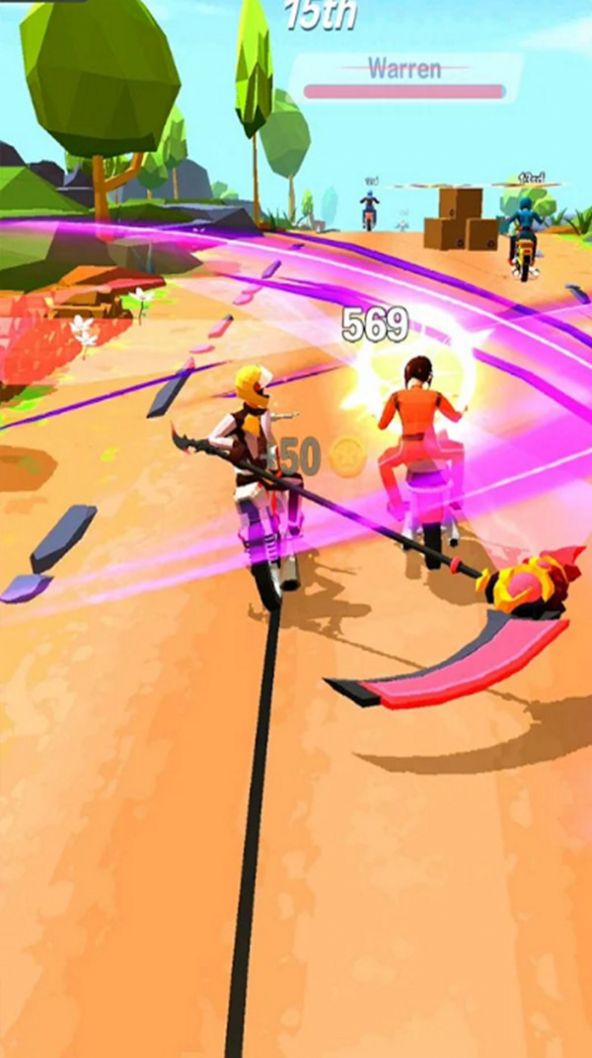 4.你将驾驶摩托车在道路上进行各种的战斗,运用各种夸张的武器消灭对手。