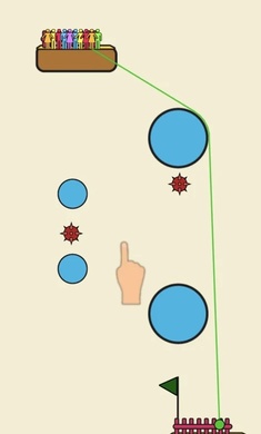 1、布置你的绳索路线,让火柴人顺利到达目的地;