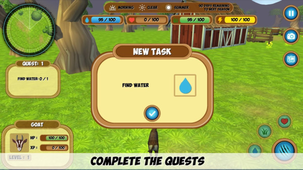 保护山羊并且寻找食物,食物需要你来亲自喂养给它们,并且提供水源。