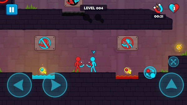 冰火火柴人继承了经典的冰火人玩法,在游戏内设置了极为丰富的体挑战内容,你们需要控制着自己的火柴人在每一个关卡之中开始闯关冒险,灵活地使用游戏内给出的机关来帮助自己不断地前进,多人模式十分的考验两位玩家们的配合默契,将能够带给你们无尽的欢乐体验,快来百家手游网下载吧。