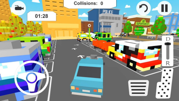 3.像素的画面制作十分简约,色彩搭配上非常的适宜,模拟停车十分有趣。
