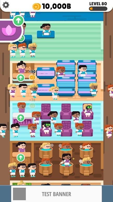 非常简单的放置玩法,适合所有人来感受温泉假日,泡温泉的客人也很多。