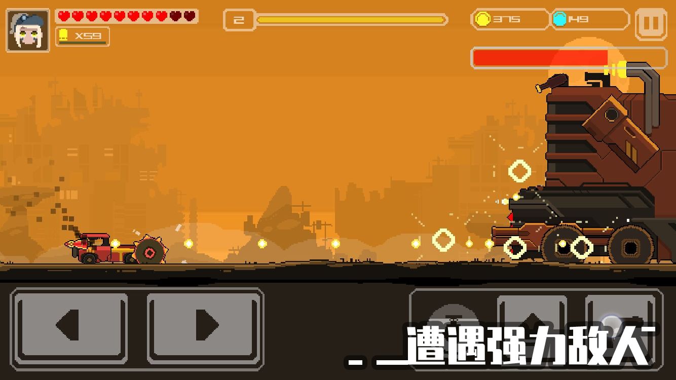 像素的制作风格,拥有着非常经典的街机画面,玩家们需要驾驶着着自己的战车在游戏的关卡之中开始自己的闯关冒险,为自己的战车配备各种各样的武器来消灭所有的敌人。