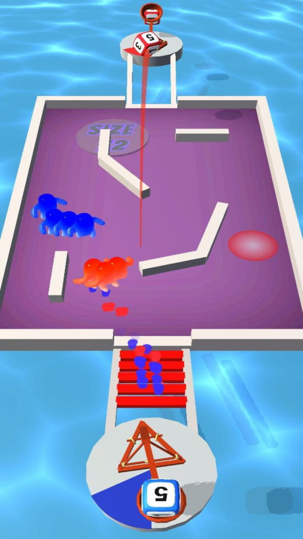 双人游戏玩法,面对面使用说中的道具来将面前的骰子不断地向前移动,等到时间结束之后,骰子在谁的底盘之中,那么谁就输掉了这场比赛。