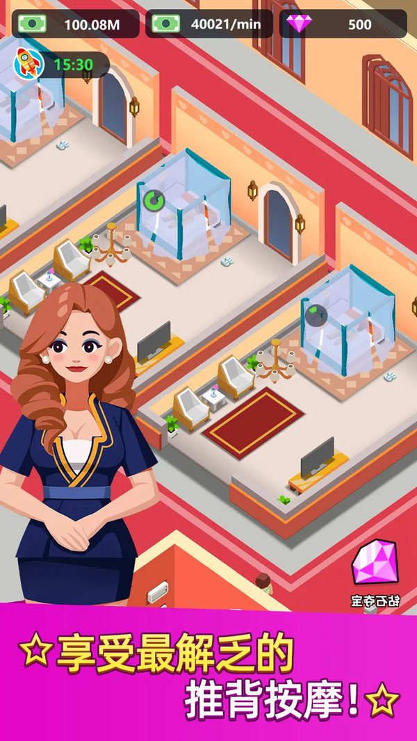 1、温泉大亨游戏进入游戏来体验全新的经营任务,打造世界上最豪华的温泉酒店。