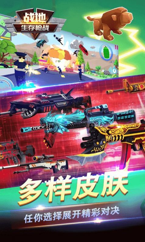 2、经典的孤岛求生、跳伞降落、辐射隔离,再现刺激的方块射击乱斗。