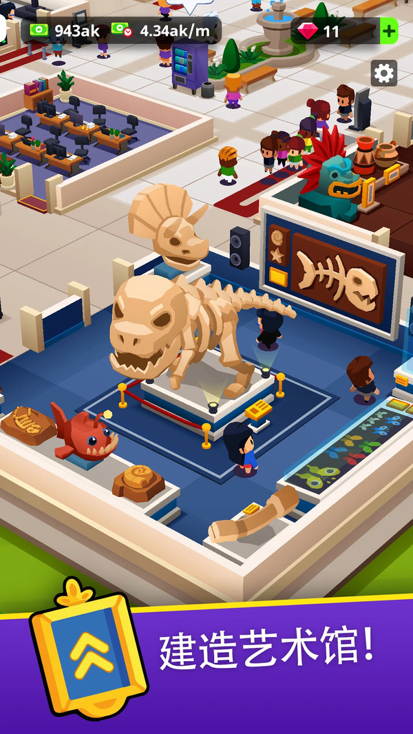 扩大升级博物馆的规模,容纳更多的人来体验,并收获到最丰厚的金币。