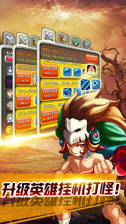 1、每一个英雄都会有着强大的技能,玩家需要通过不断的战斗,快速的去提升它们。