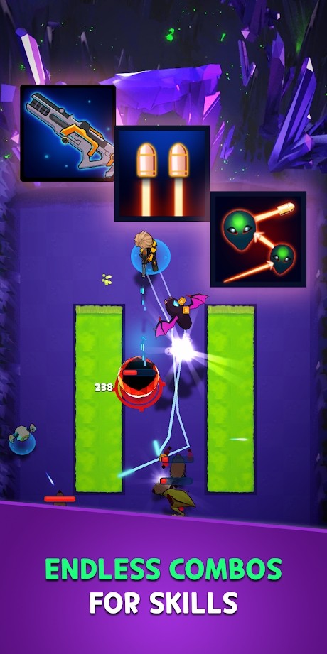 1、通过不断的完成任务,就能让自己获取超多不同的武器还有一些场景样式。