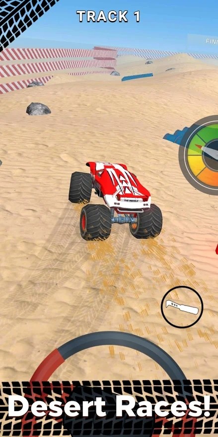 怪胎车轮的玩法十分的考验玩家们自己的驾驶技术,在游戏内具有着极为丰富的跑道种类,你们将要控制着自己的越野赛车完成更多的驾驶任务,崎岖的道路需要玩家们时刻小心,凭借自己强大的技术征服更多的困难,完成任务之后的你将能够获得更加丰富的奖励,快来百家手游网下载吧。
