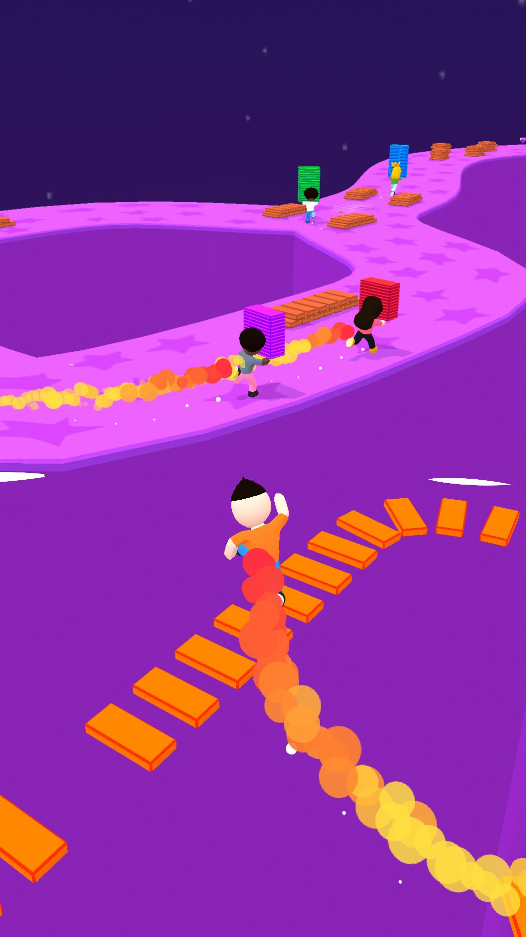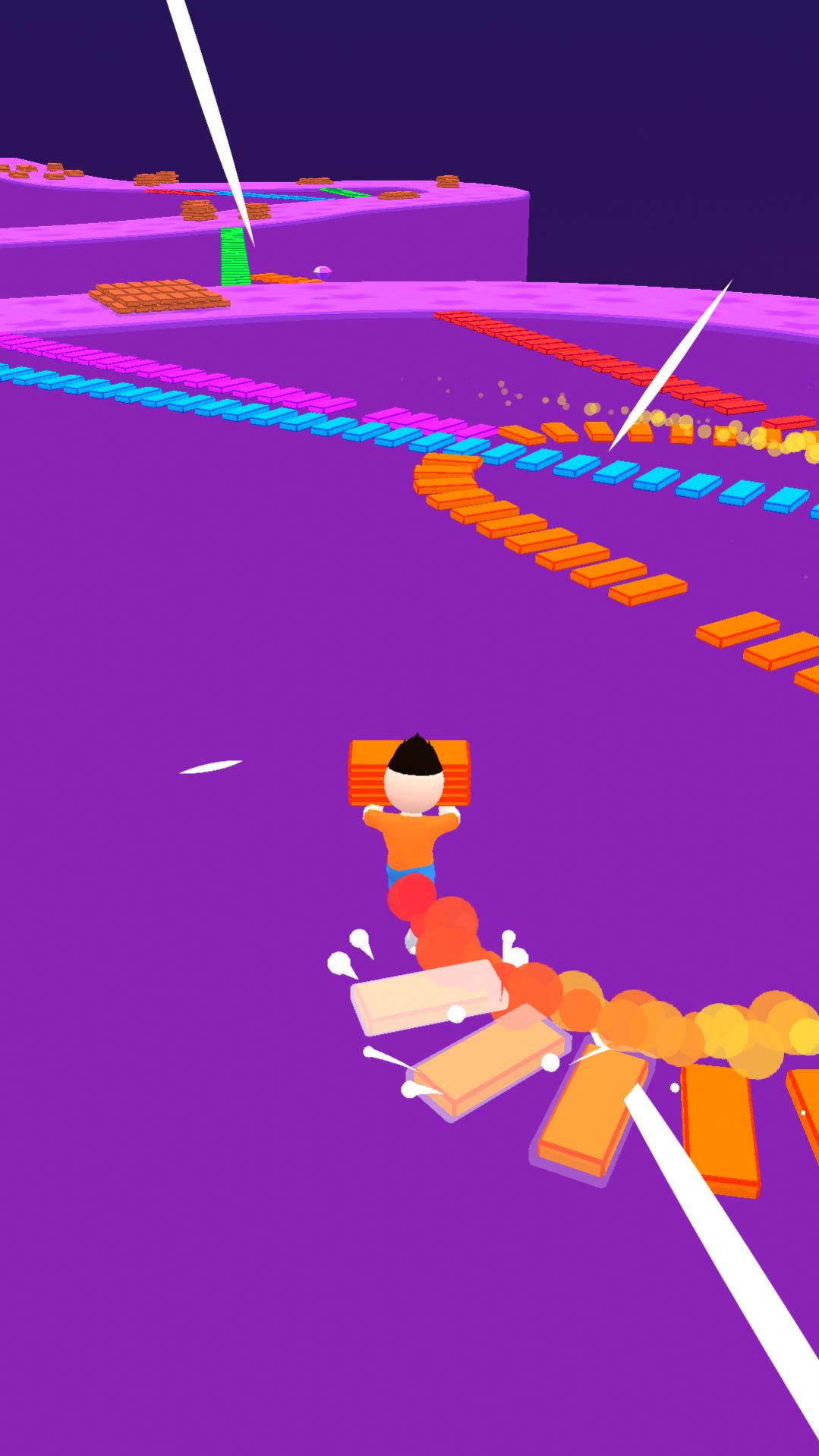 十分有趣的休闲闯关小游戏,操控小人收集赛道上的木板来搭建天梯,