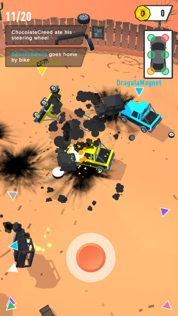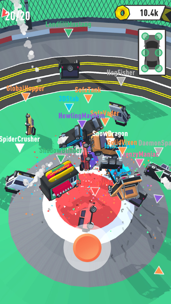 这是一场极为刺激性的驾驶挑战比赛,玩家们将在一个超大的竞技场之中,驾驶着自己的汽车同对手们进行一场猛烈的撞车比赛,完全就是看谁的汽车足够结实。