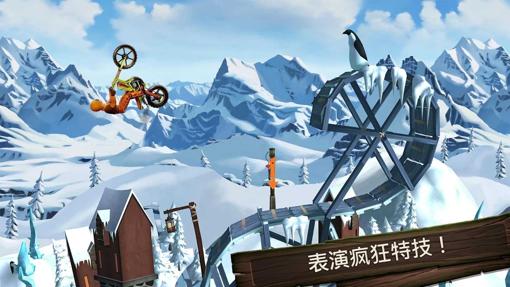 3、只需启动你的摩托车,准备在不可能的轨道上做特技。