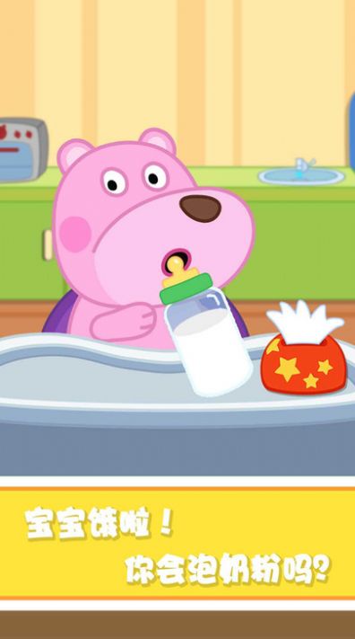 这款游戏的设计非常的简单有趣,超级好玩,在这里,你的宝宝饿了,你要帮助宝宝冲奶粉,了解宝宝的生活习惯,很是好玩有趣。