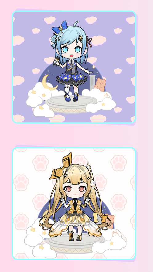 3、创意DIY:超多Q版人物任意DIY装扮,还有专属可爱表情,轻松书写属于自己的少女心故事。