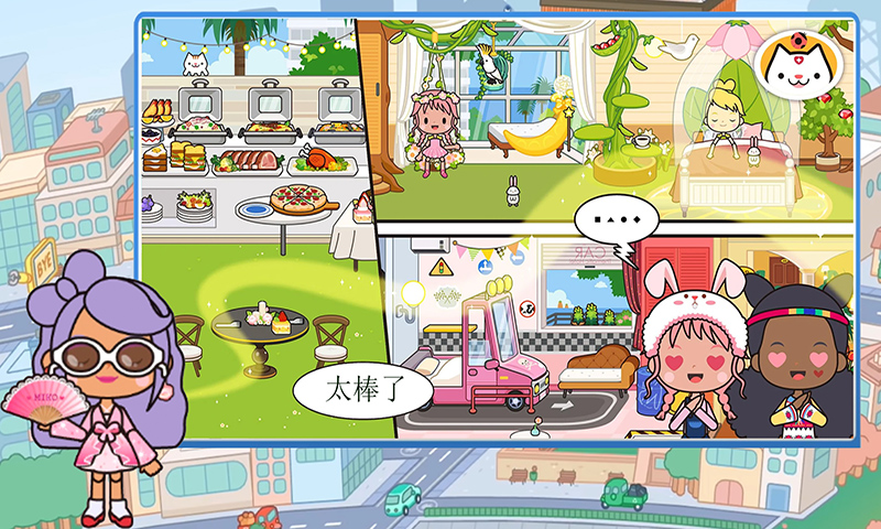 2、多种不同主题的场景画面,可以在不同的场景中进行不同的趣味活动。