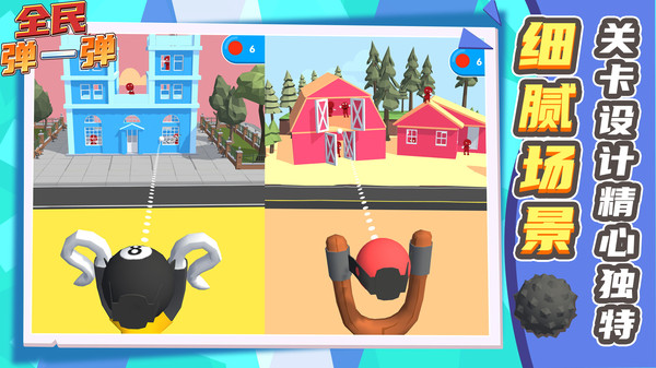 1、玩家需要完成关卡中的任务,击中所有敌人,给你小时候一样的弹弓。