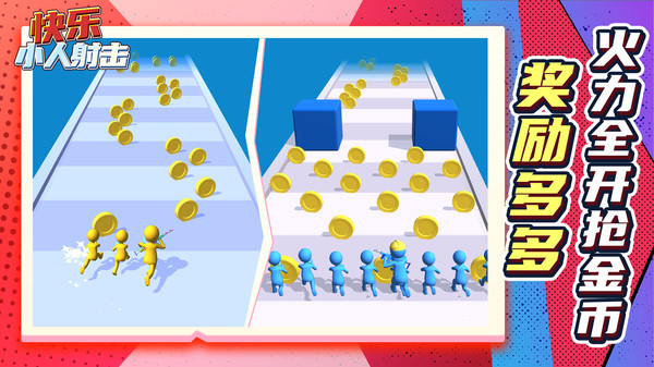 【快乐小人射击】这是一款以火柴人为游戏主题的休闲益智游戏,在快乐小人射击游戏中采用了非常有创意的跑酷和射击结合,大大增加了游戏的乐趣,游戏中,您可以在赛道上收集金币,金币可以帮助您升级武器装备,获得更强的战斗力,喜欢的小伙伴赶紧下载体验吧。