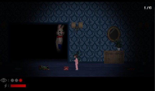 2、充满神秘的房间,例如有一间床上,占满了鲜血,更有的房间中有着一个直立行走的兔子。