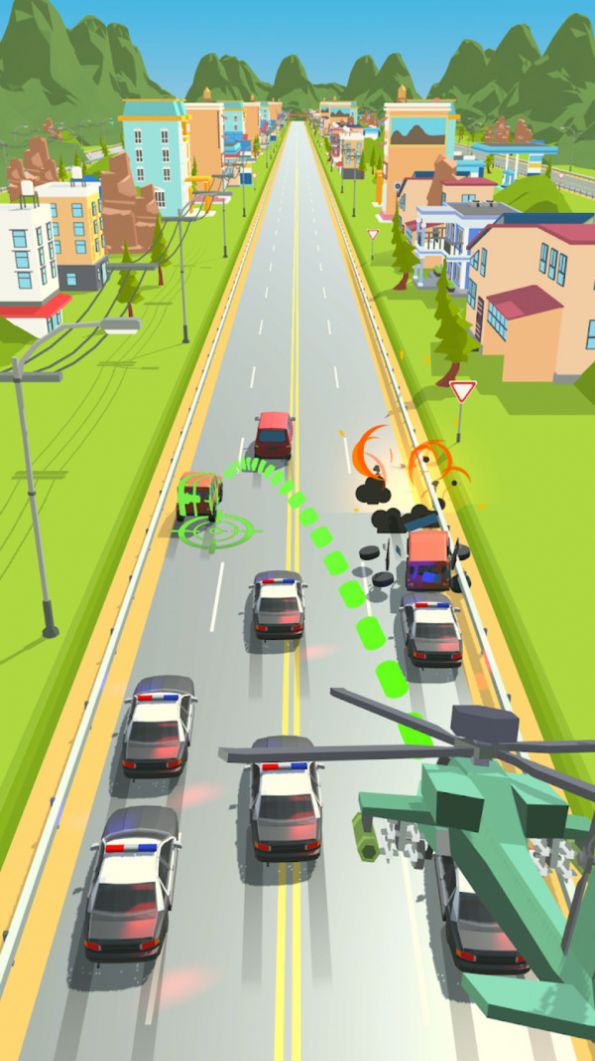 游戏中,玩家需要驾驶直升机帮助警察追击坏人,从高空寻找敌人的位置,使用武器射击敌人,但一定要注意不要伤到无辜的人。