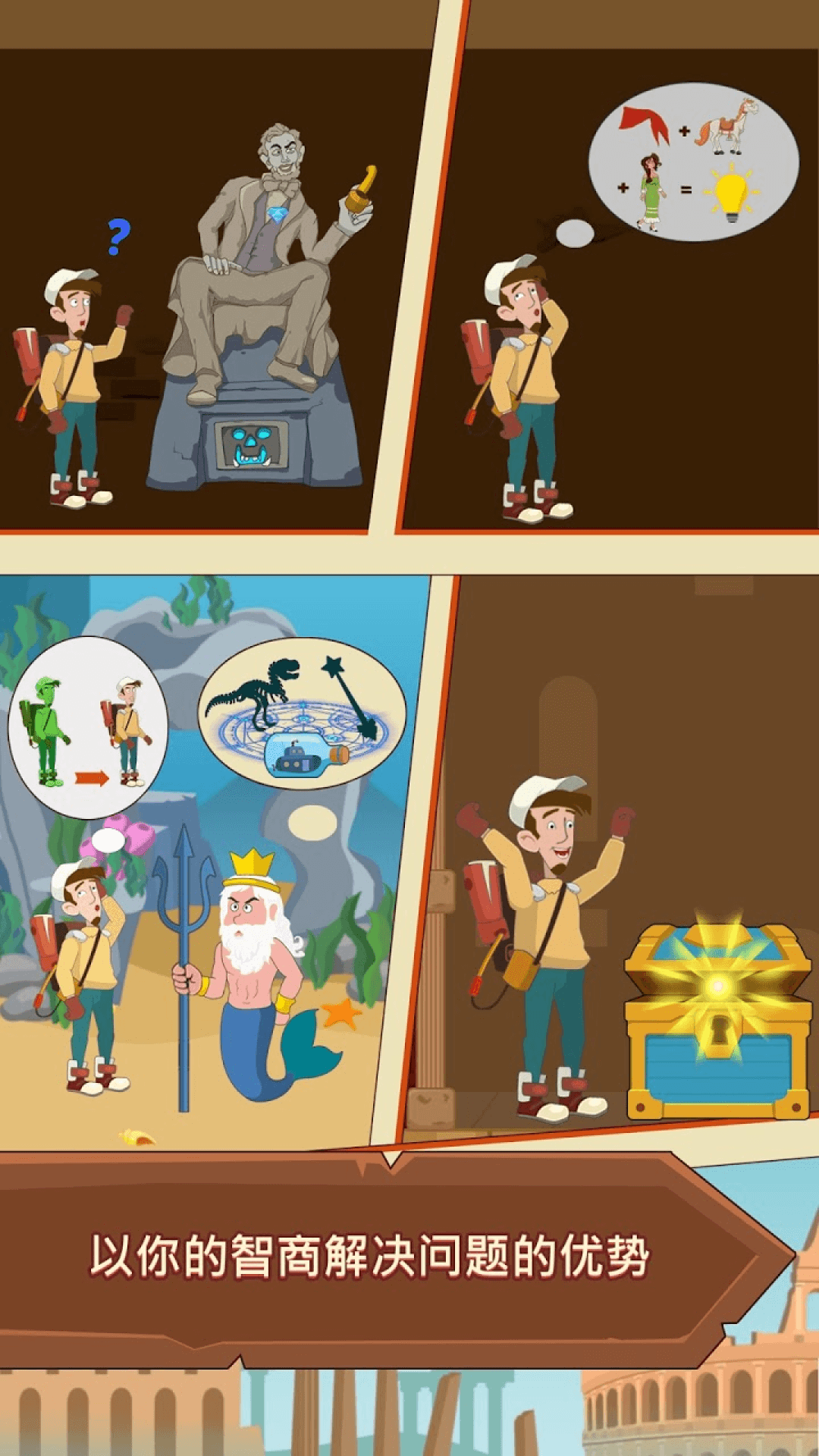 1、Q版的游戏画面,形象搞笑的人物角色,超多的谜题关卡设置。
