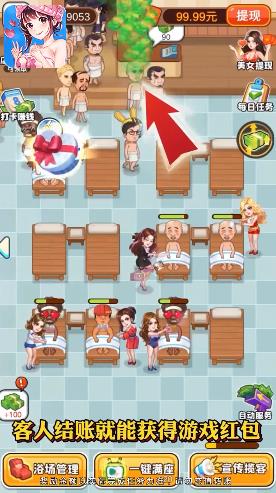1、这是一次非常有趣的休闲模拟旅行,游戏中,我们会经营自己的洗浴城。