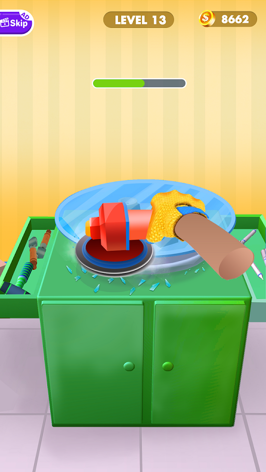 1、将不同的玻璃切成相同大小的薄片,玩家需要在游戏中获得更高的分数。