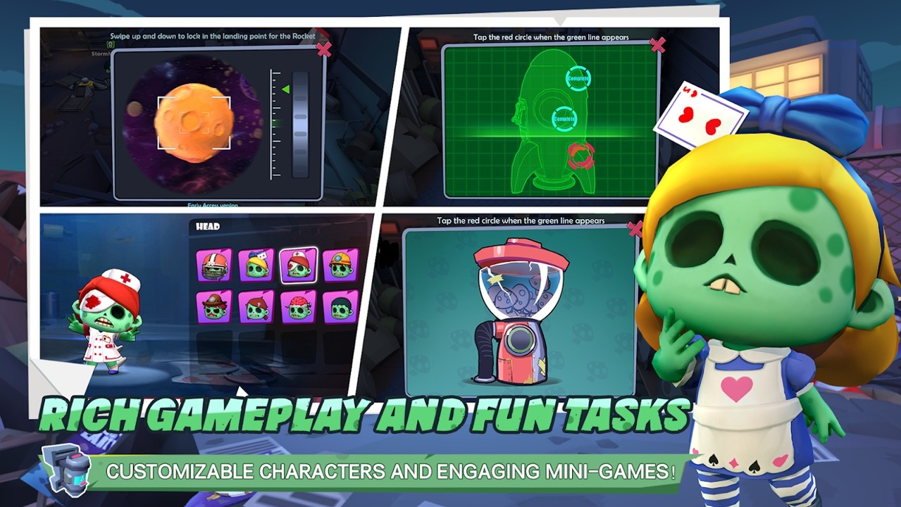 游戏内拥有着十分可爱的卡通画风设计,因此里面的僵尸形象也十分的Q萌,能够带给大家更多的乐趣体验,玩法上充满着欢乐。