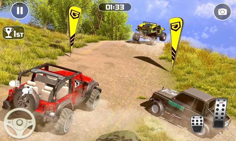 1、一起驾驶越野车辆完成速度的冲击,在不同的地形之中完成任意的穿越。