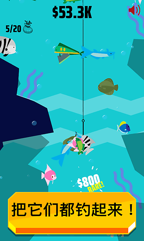 3、提高钓鱼技巧,让你收获更多的小鱼,还有那些在海底等你钓的稀有鱼。