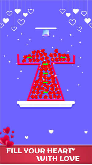 您必须以触及所有标记水位的方式在容器中装满心形,但心形不应从容器中出来。