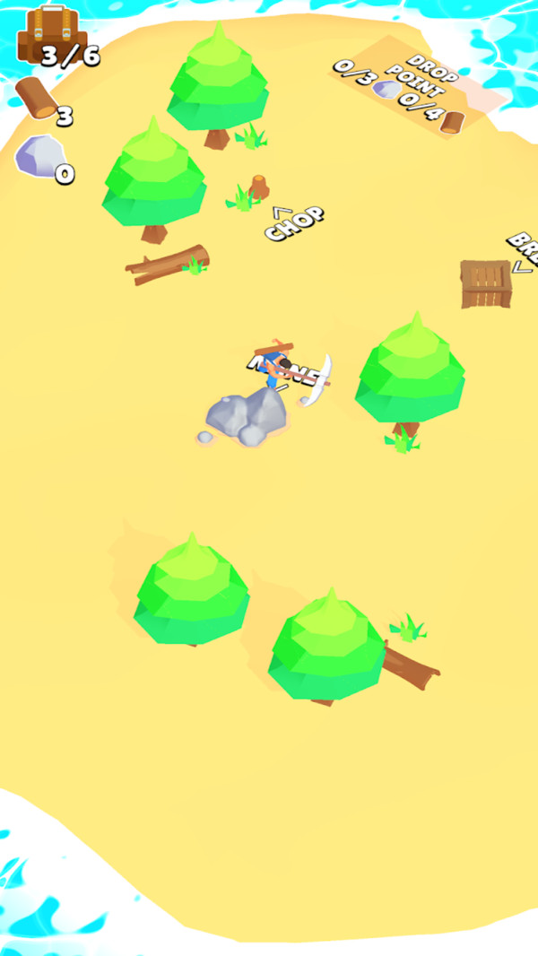 3、在这个充满着卡通风格的场景中,玩家将控制主角去砍伐树木。