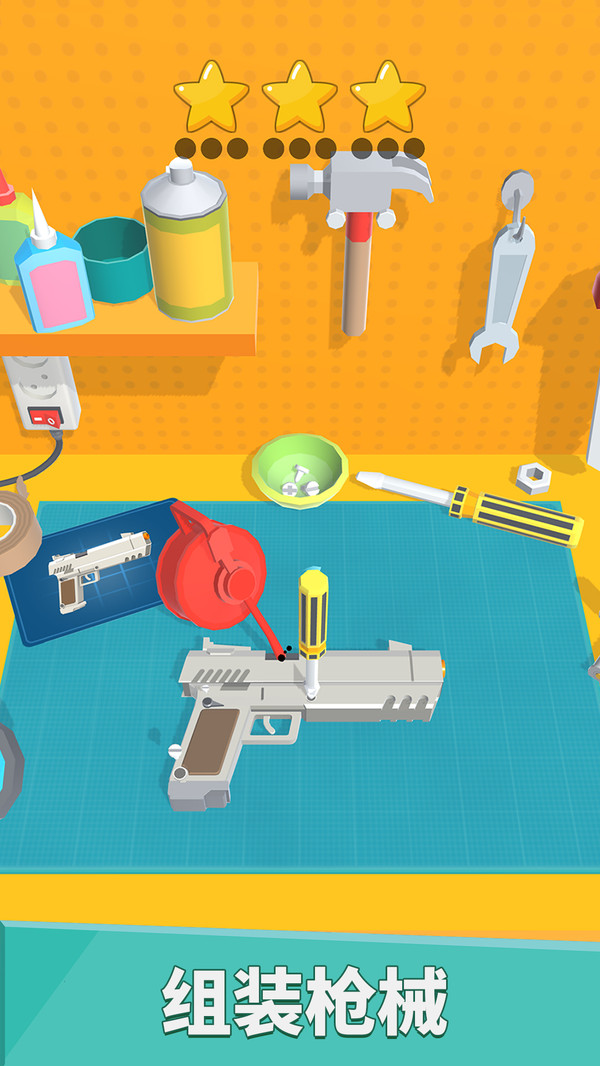 从简单的武器开始选择将其拆解,并能够根据提示将它们组装起来。