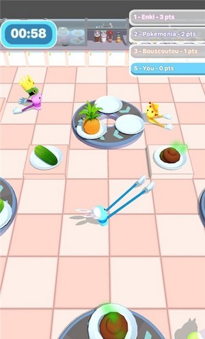 尽可能收集更多的美食,带来更高的分数,并成为这场游戏的胜利者。