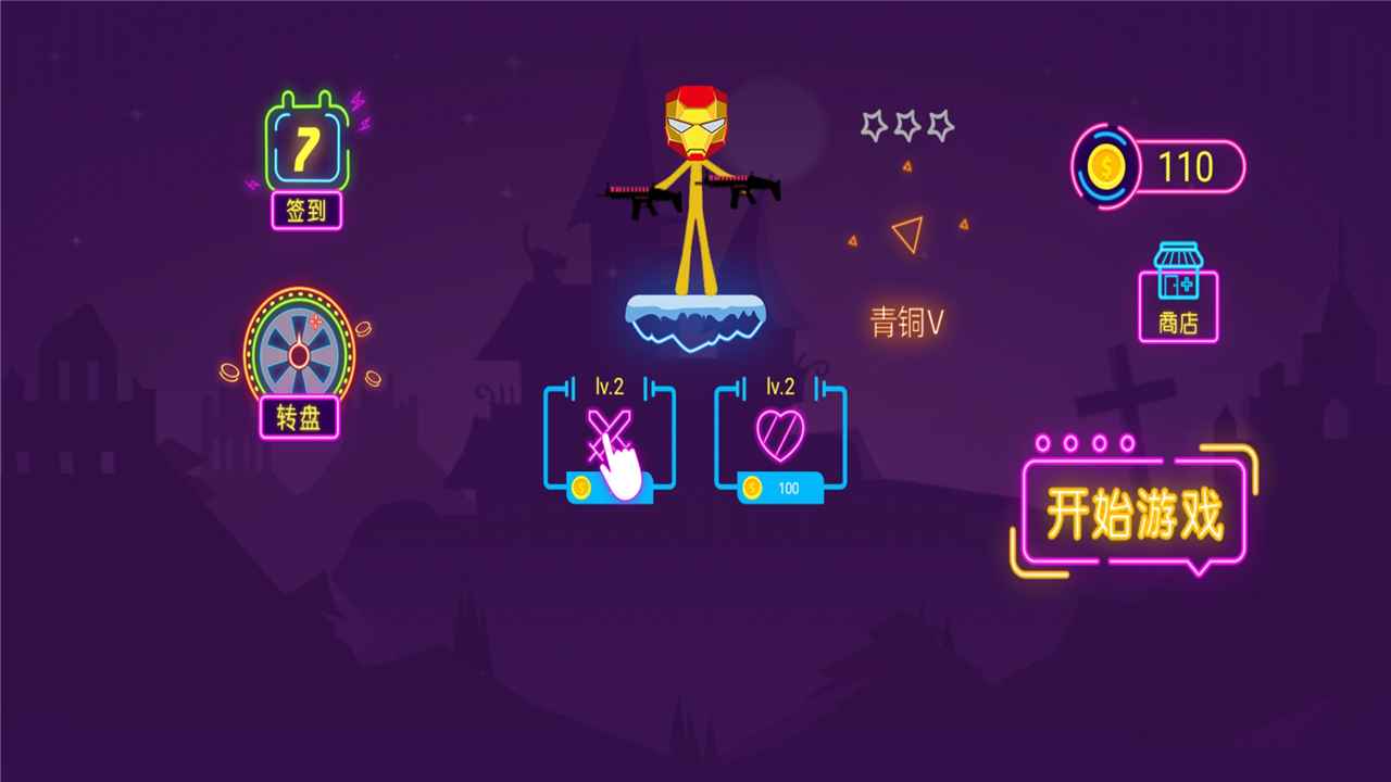 各种炫酷的火柴人角色和独特造型的皮肤,更加强大的角色拥有更大的攻击力。