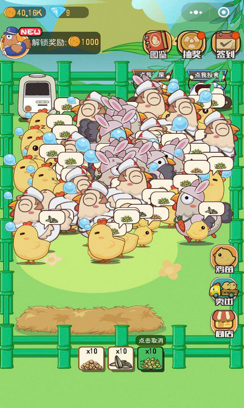 玩家化身鸡场主,解锁各种小鸡仔,培育繁殖各个品种,收集小鸡图鉴,给小鸡喂食清洗,打造你的温馨养鸡场。