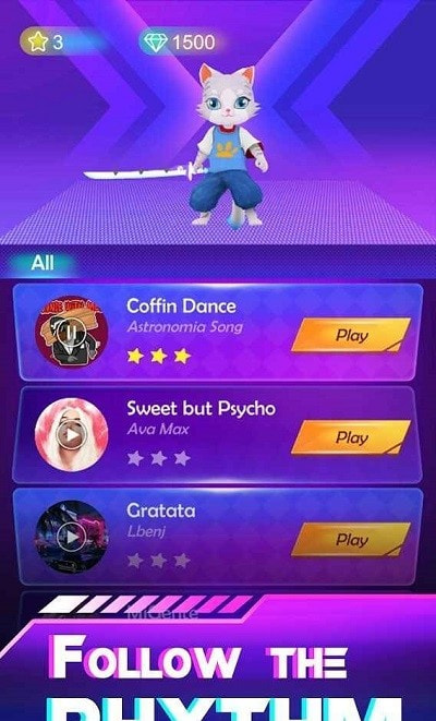 3、各种曲目任你选择,跟随着整体的节奏左右移动,带来极佳的体验。