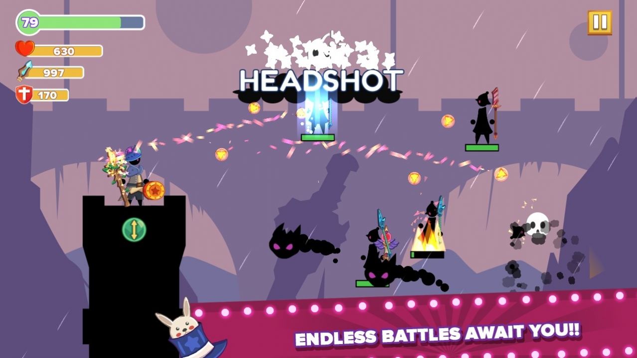 小心敌方的箭雨,不断升级你的英雄提高防御力,才能完成更多的挑战。