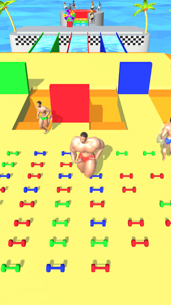 我肌肉最强的玩法操作十分的简单,你们只需要去控制着自己的角色在场景之中不断地去拾取各种哑铃即可,这样能够帮助人物快速的增强身材,在规定的时间内谁的人更加的强壮,那么谁就是本场比赛的赢家,将能够领取到游戏内所提供的丰厚奖品,快来下载游戏挑战一下吧。
