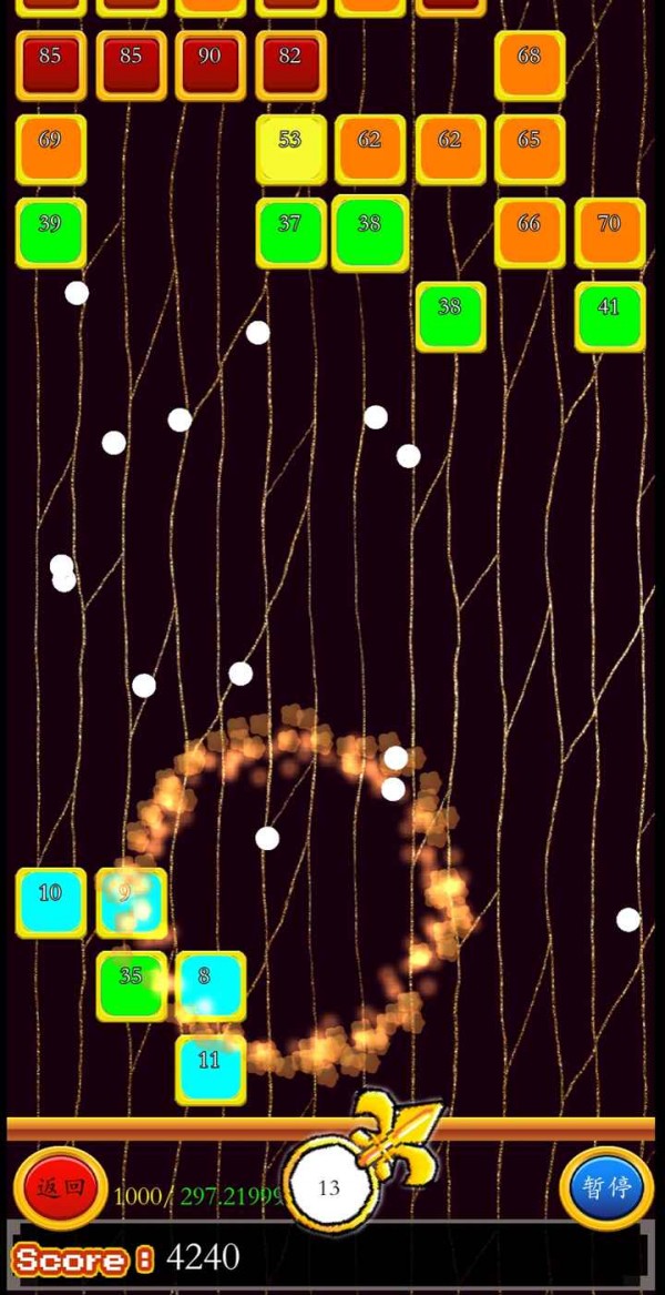 玩法上就是简单的弹射消除玩法,控制好自己晓求得弹射方向,使其能够顺利的粉碎掉面前的所有方块,并为你带来相应的分数,可以去获得更多的奖励。
