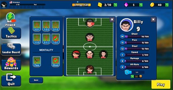 2、每一支队伍的实力都不一样,你们需要更熟练的控制队员才能够获得胜利。